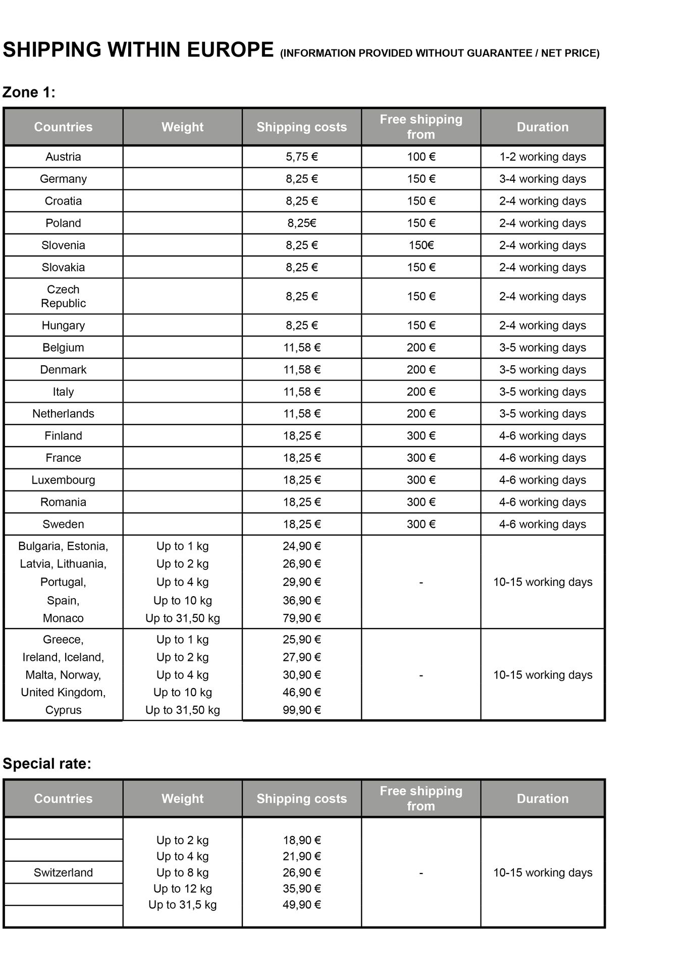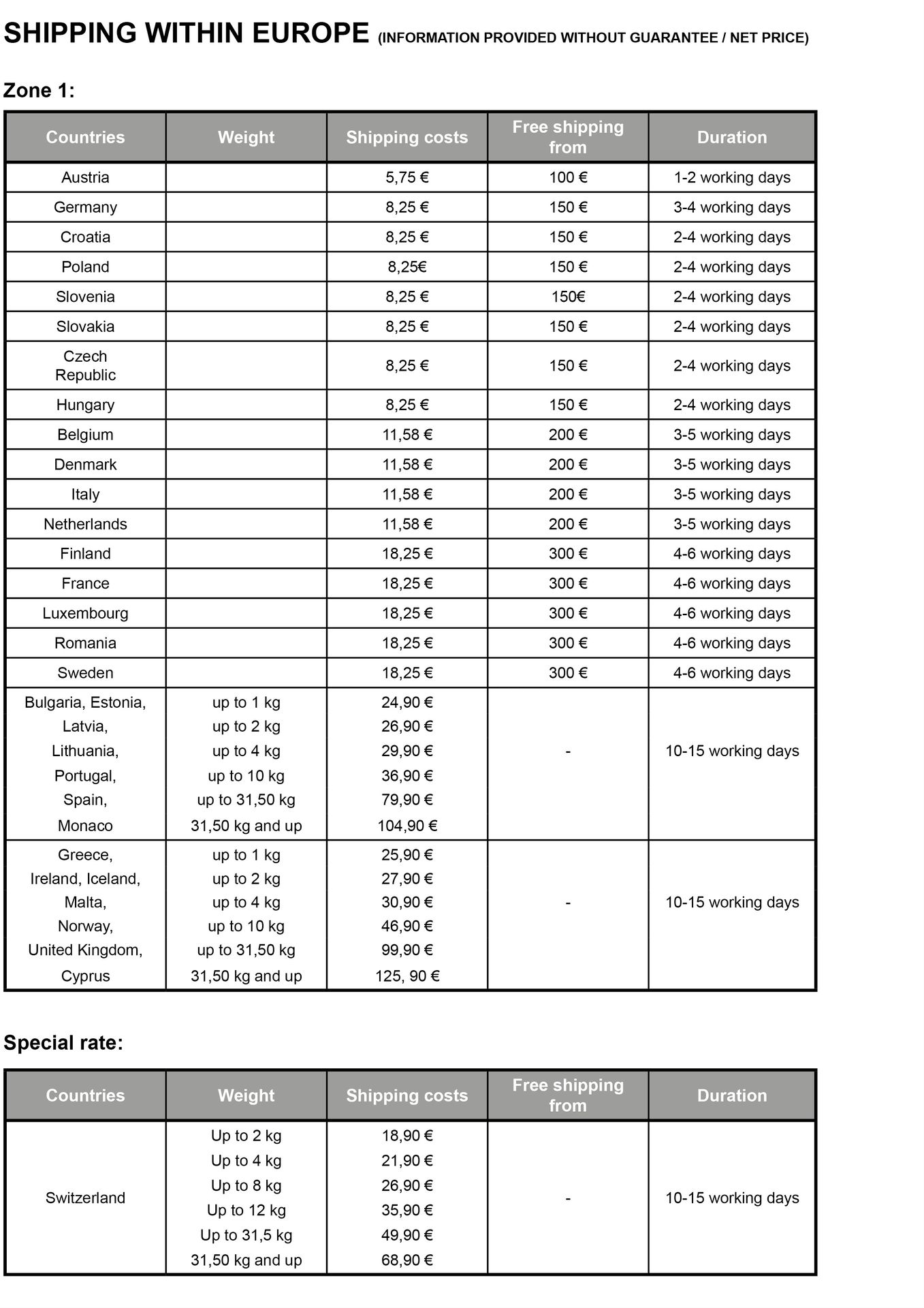 Dadurch ist der Versand innerhalb der EU einfach und innerhalb weniger Tage möglich!