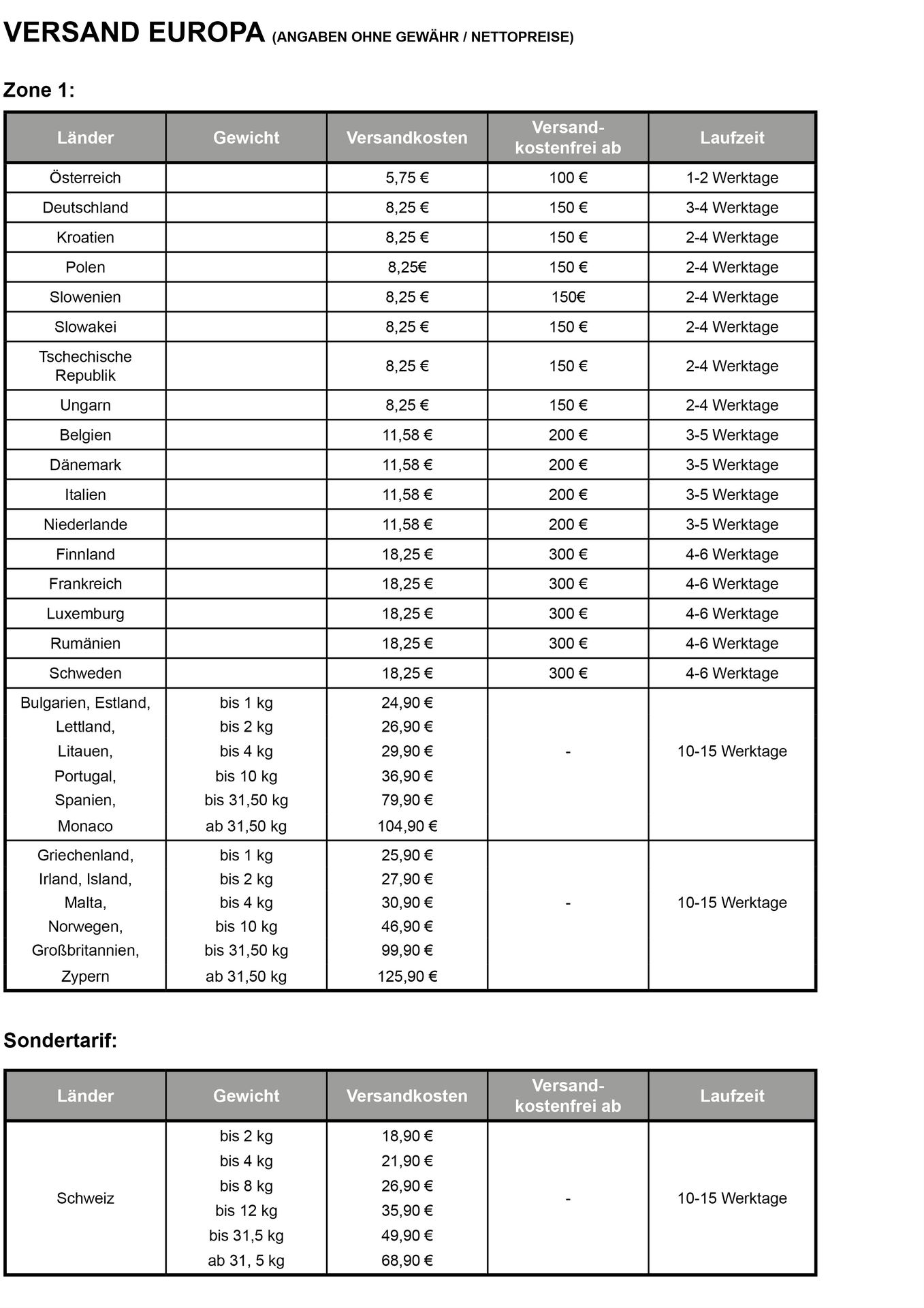 Europäischen Union liefern wir mehrwertsteuerfrei, also zu