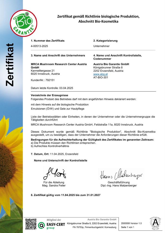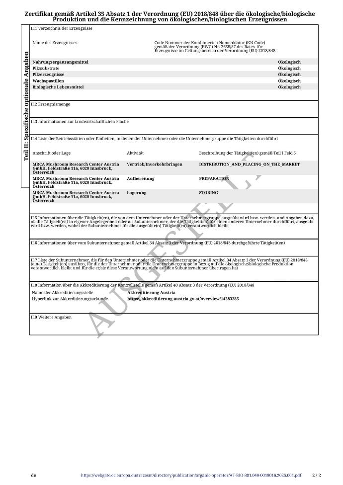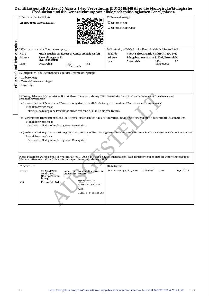 Erfahrungen konnten wir die MRCA GmbH (Mushroom Research Center Austria)