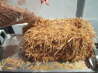 zerreißen lassen. Der Strohballen soll frisch riechen. Wenn er bereits