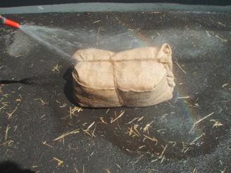 Vor dem Beimpfen wird der Strohballen über Nacht (rund 12 – 16 Stunden)