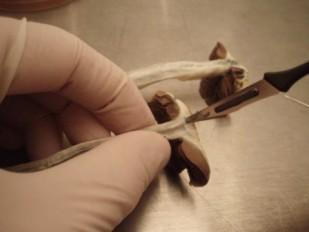Da die Fruchtkörper im Wesentlichen aus komprimiertem Myzel bestehen, kann man grundsätzlich Fruchtfleisch von jedem Teil des Pilzes verwenden. Am besten eignet sich jedoch der Hutbereich. Der Stiel wird mit einem Skalpell etwa 0,5 cm tief eingeschnitten und der Länge nach auseinandergezogen, ohne dass das Innere mit den Fingern berührt wird. Das Skalpell wird wieder über den Spiritusbrenner gehalten und eine frische Klinge aufgesetzt. Das Gewebestück für das Klonen entnimmt man von ganz innen, wo man sich größte Sauberkeit verspricht. Es genügt pro Petrischale ein 3x3 mm großes Pilzstück. Mit Hilfe des Skalpells soll nun dieses Stück Fruchtfleisch im antibiotischen Agar-Nährboden "versenkt" werden. Die fertig inokulierten Petrischalen rasch mit Parafilm versiegeln. Um das Myzelwachstum anzuregen, sollen die Klone dunkel und je nach Gattung bei der richtigen Temperatur gelagert werden.