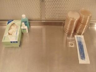 Um zu verhindern, dass auf den Agarplatten andere Mikroorganismen (Bakterien, Schimmel etc.) siedeln, empfehlen wir, vor einem HEPA-Filter oder in einer Impf-/Glovebox zu arbeiten. Die Arbeitsfläche und die Hände gut reinigen und desinfizieren. Das Tragen von Haarnetz, Gesichtsmaske und Latex-Handschuhen senkt das Kontaminationsrisiko. Da gerade Sporenabdrücke von selbst gesammelten Pilzen oft von Bakterien bewohnt sind, bewährt sich hier der Einsatz von antibakteriellen Agarmedien.