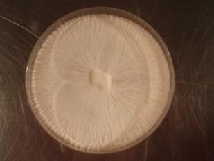 Die Myzelstränge auf dieser Agarplatte in Petrischale werden zum ersten mal selektioniert,